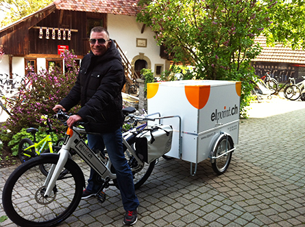 Andreas Betschart bekundete immer mehr Mühe mit der Parkplatzsituation. «Er hat gemault», sagt Christine Suter, seine Chefin am Hauptsitz in Derendingen. Betschart maulte nicht nur, er brachte auch einen Vorschlag: Die Anschaffung eines E-Bikes und einen Anhängers. «Wenn schon, denn schon», sagte sich Suter – und investierte über 10'000 Franken in das neuste und stärkste Stromer-Modell sowie den Anhänger. Ab nächstem Freitag wird das Gespann definitiv einsatzbereit sein, der lifttaugliche Anhänger wird derzeit noch optimiert.
